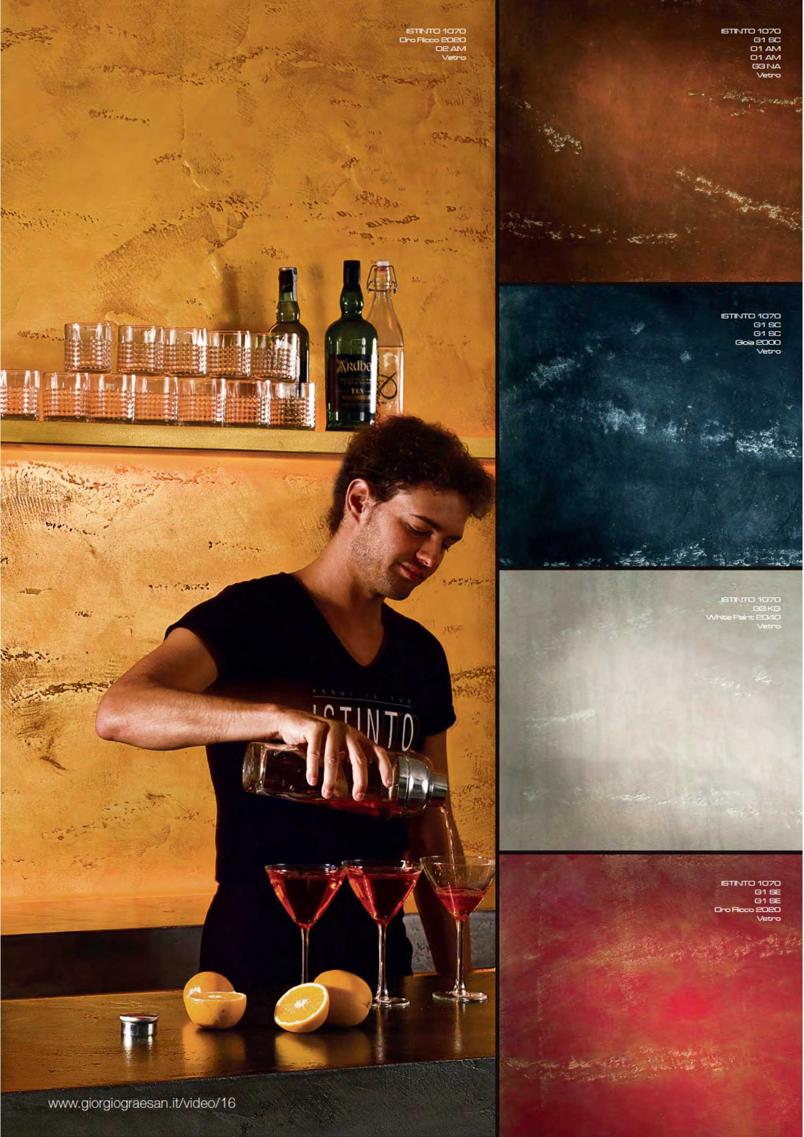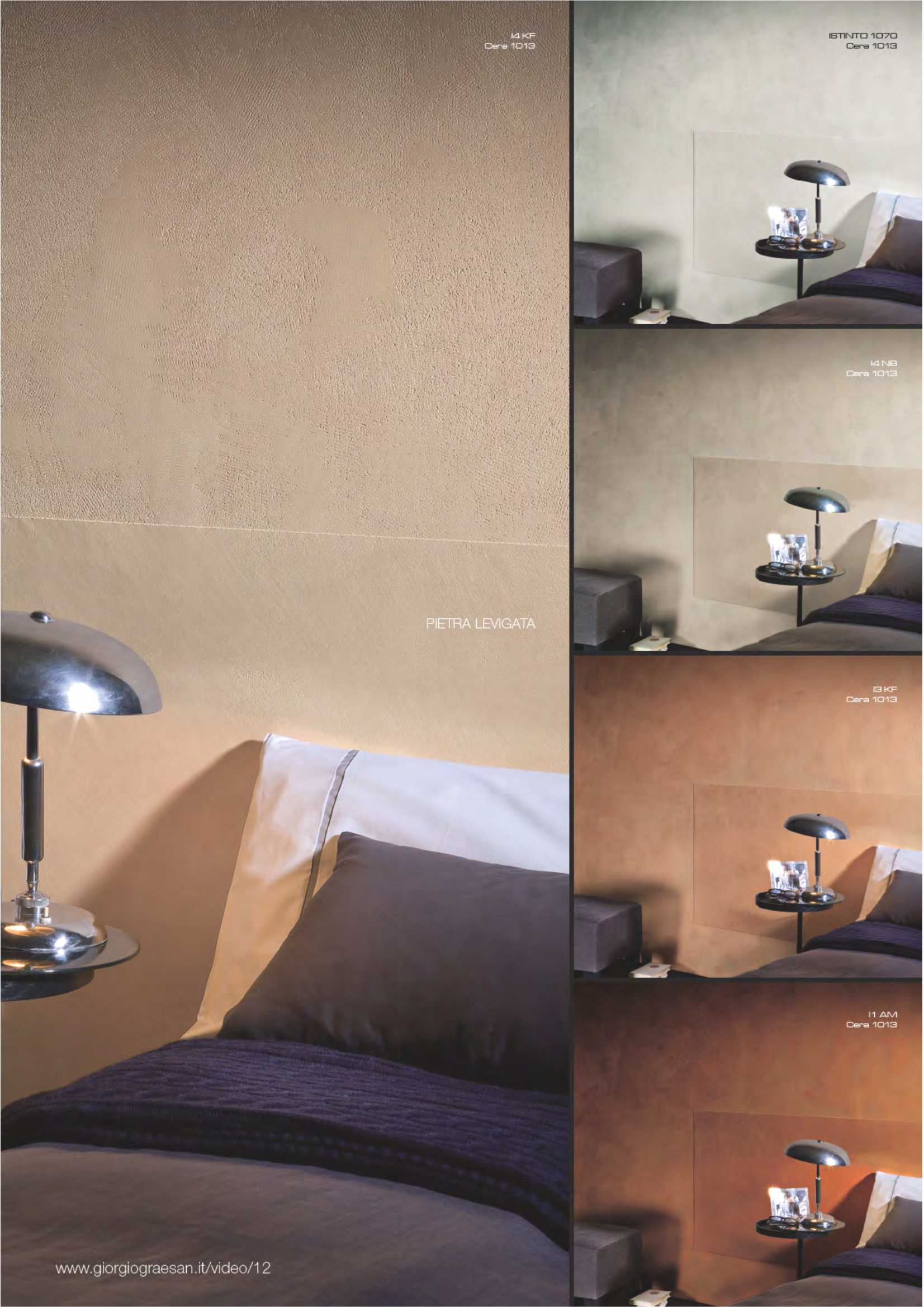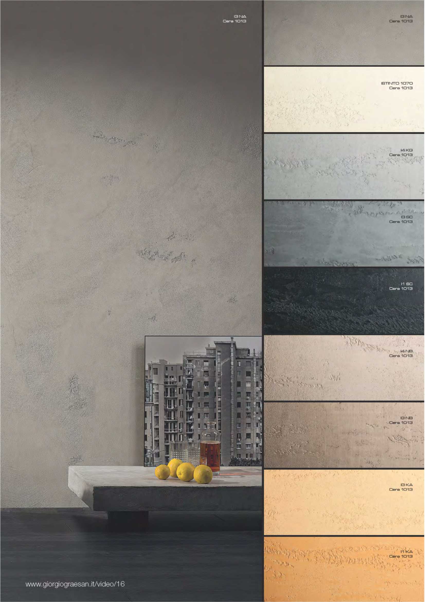 Renumit pentru Spatula Stuhhi sau Stucco Veneziano, cum îl cunoașteți mulți dintre dvs., brandul Giorgio Graesan este consacrat și pentru produsul de tip Instinto cu care se pot efectua următoarele modele: Pietra Spaccata, Zen, Bambus, etc. Ca producător de top, acesta mai are o gamă vastă de produse (culori și efecte) care pot satisface nevoile tuturor.