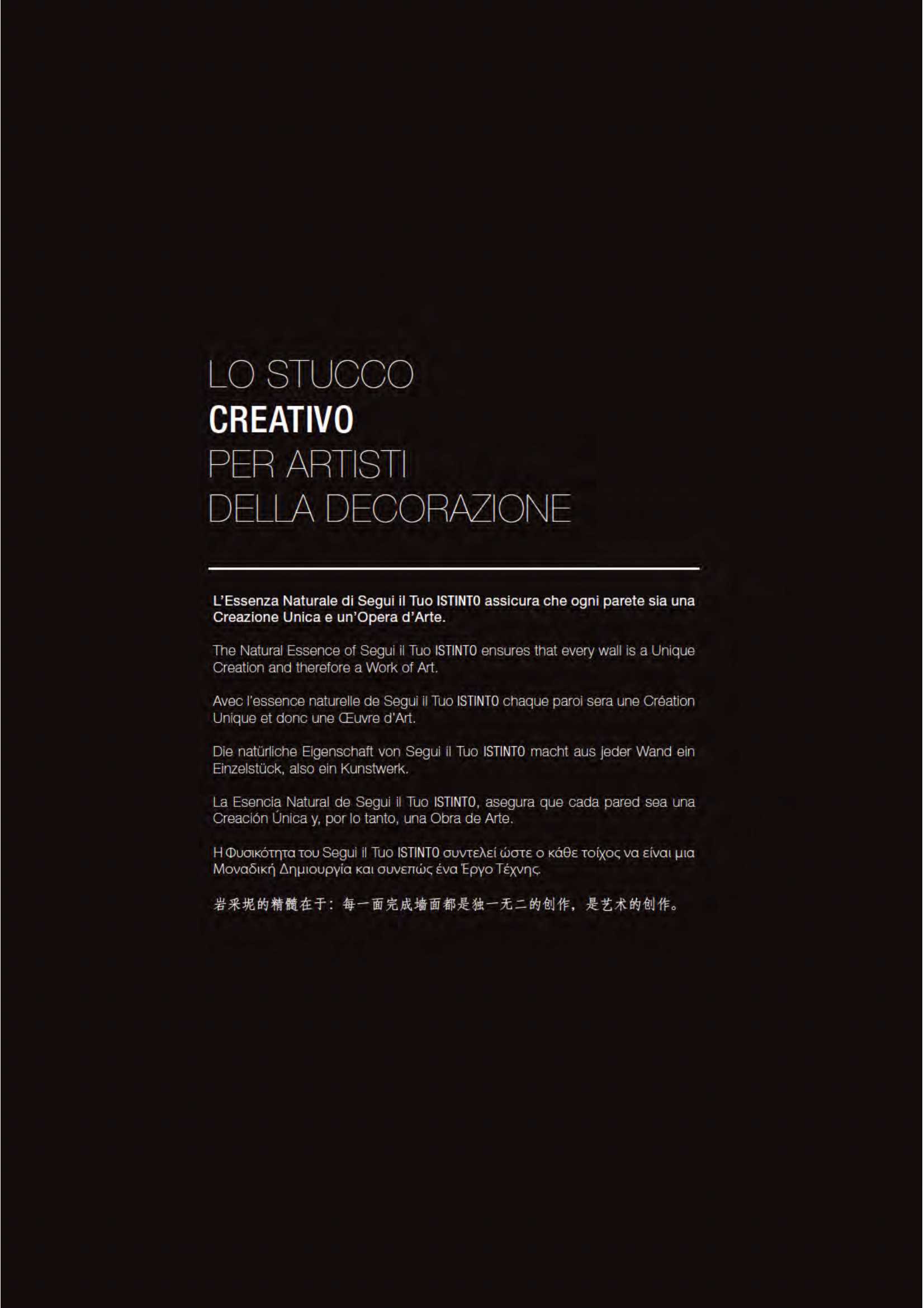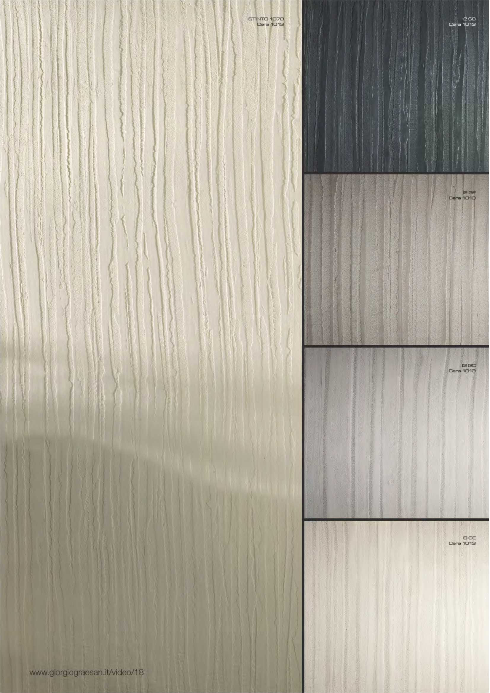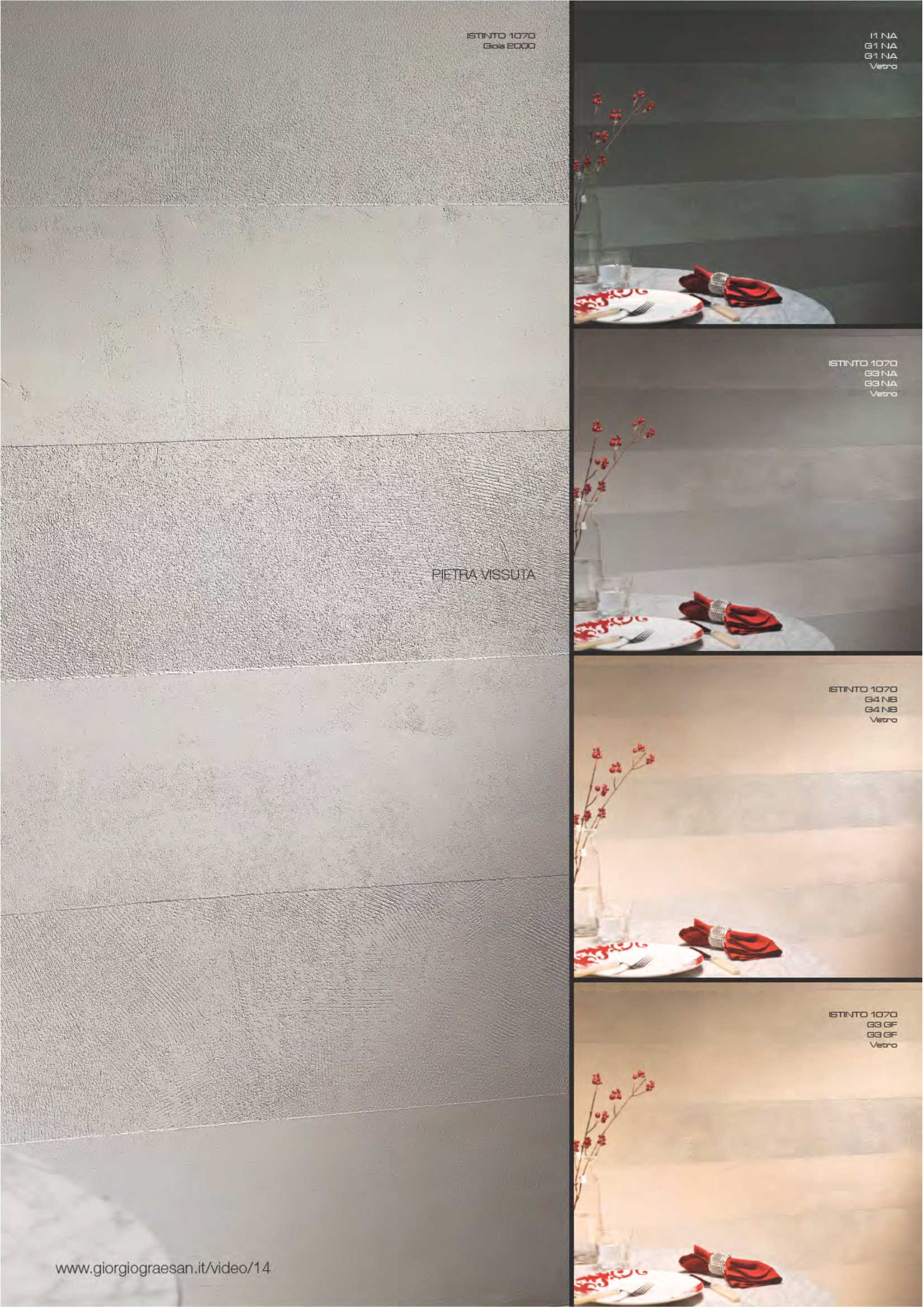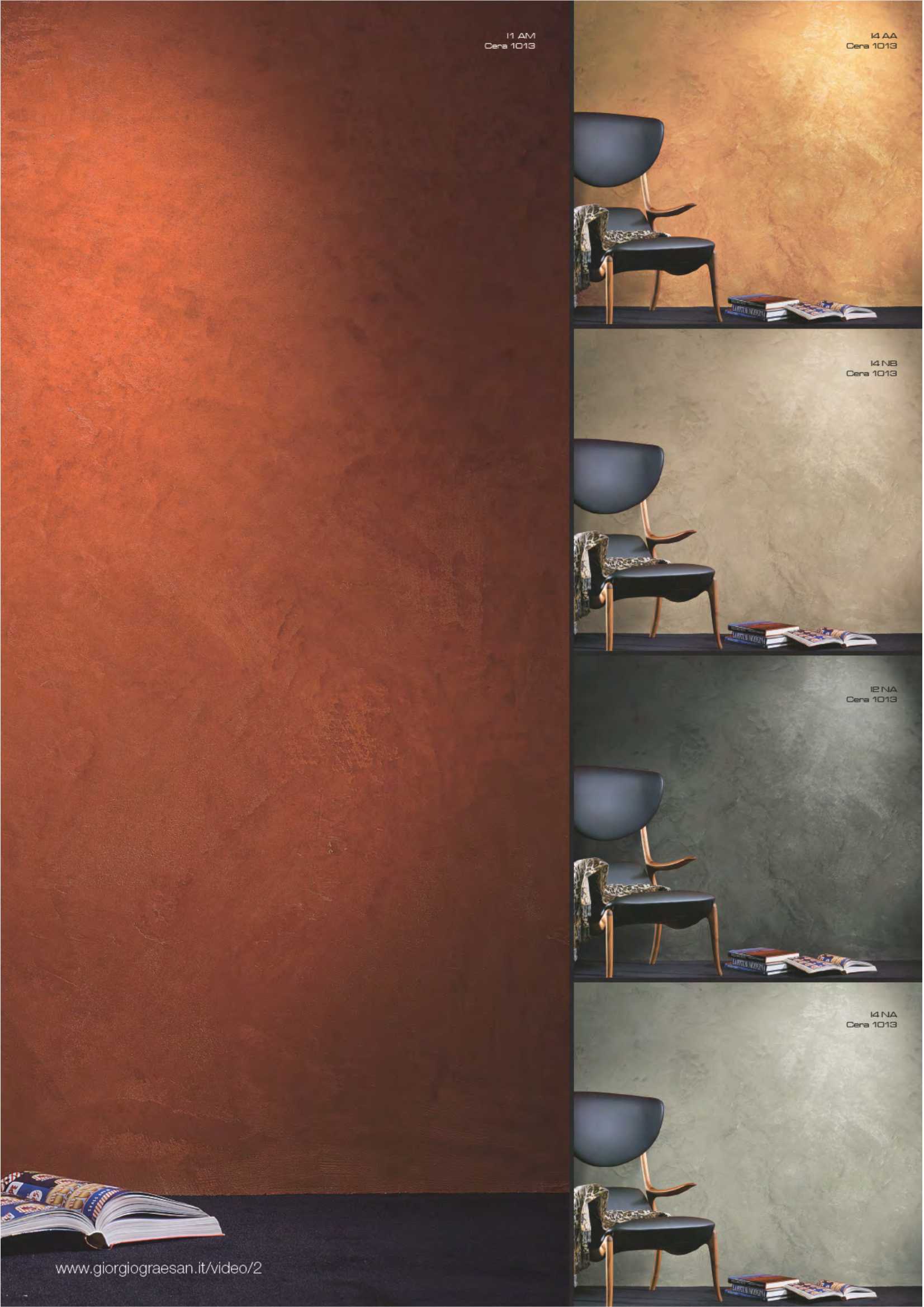 Renumit pentru Spatula Stuhhi sau Stucco Veneziano, cum îl cunoașteți mulți dintre dvs., brandul Giorgio Graesan este consacrat și pentru produsul de tip Instinto cu care se pot efectua următoarele modele: Pietra Spaccata, Zen, Bambus, etc. Ca producător de top, acesta mai are o gamă vastă de produse (culori și efecte) care pot satisface nevoile tuturor.
